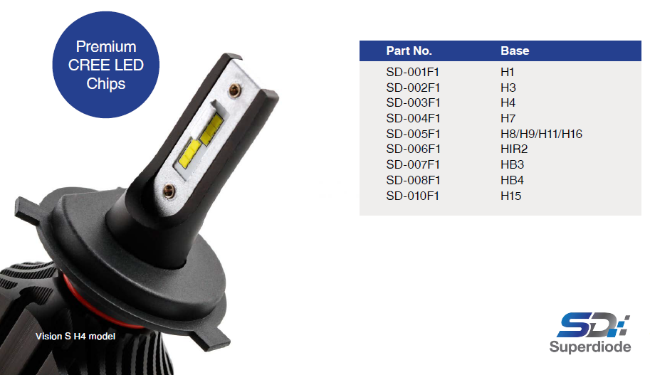 - True Plug & Play Capability: Compact heatsink designed and OEM plugged. These ensures that Superdiode LED Kit will fit into any housing without any modification.